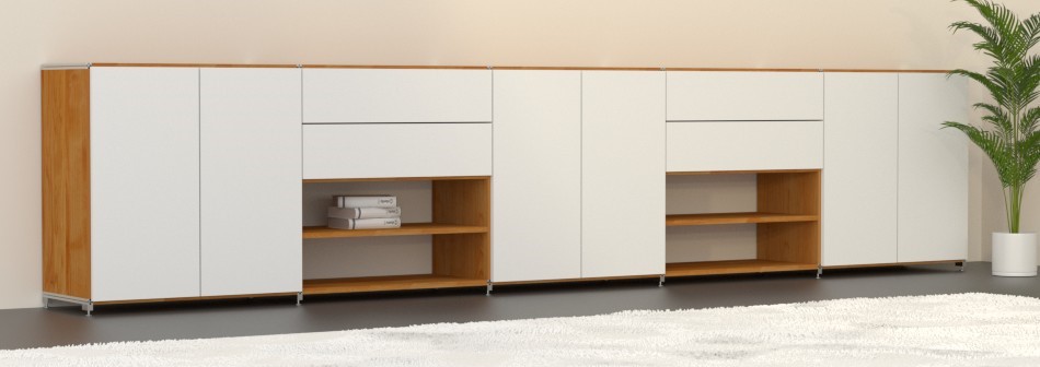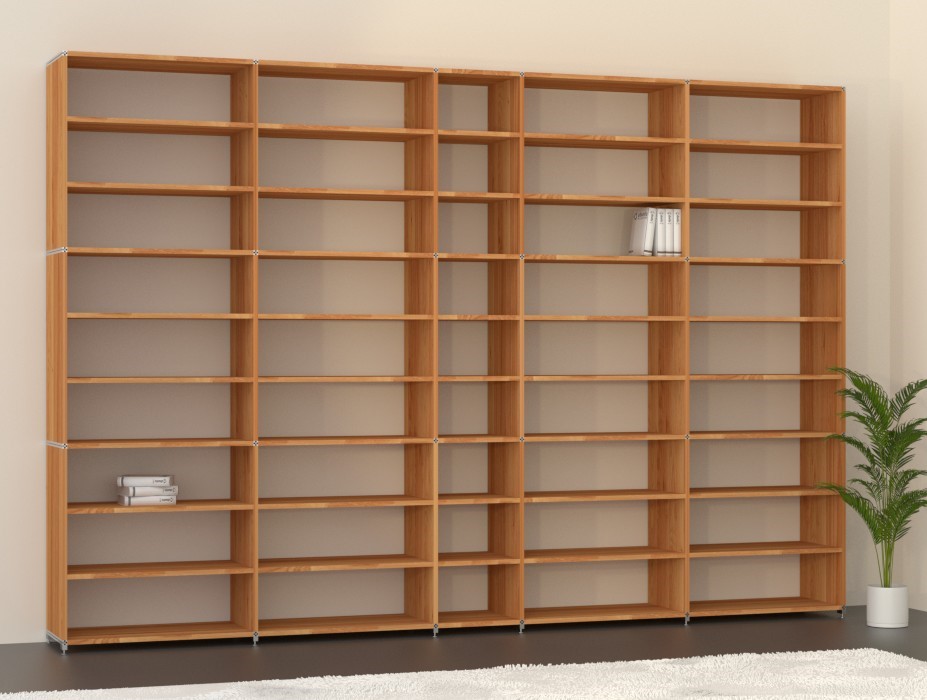 Wir haben standardmäßig 8 verschiedene Tiefen im Programm. Zwischen 19.2cm und 64.0cm alle Tiefen in Schritten von 6.4cm. Sollten Sie eine ganz bestimmte Tiefe benötigen, so können wir das sicher auch für Sie realisieren. Schreiben Sie uns in Ihrer Regalanfrage einfach die Tiefe, die Sie benötigen.
